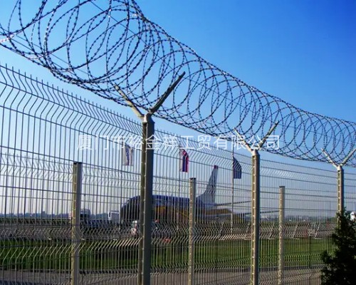機(jī)場(chǎng)用的護(hù)欄網(wǎng)是機(jī)場(chǎng)專用的Y型安全防護(hù)網(wǎng),Y型安全防御護(hù)網(wǎng)的立柱上端是由V型的支架焊接這網(wǎng)片,整體看來其立柱相似Y型,故名為Y型安全防御護(hù)網(wǎng)。